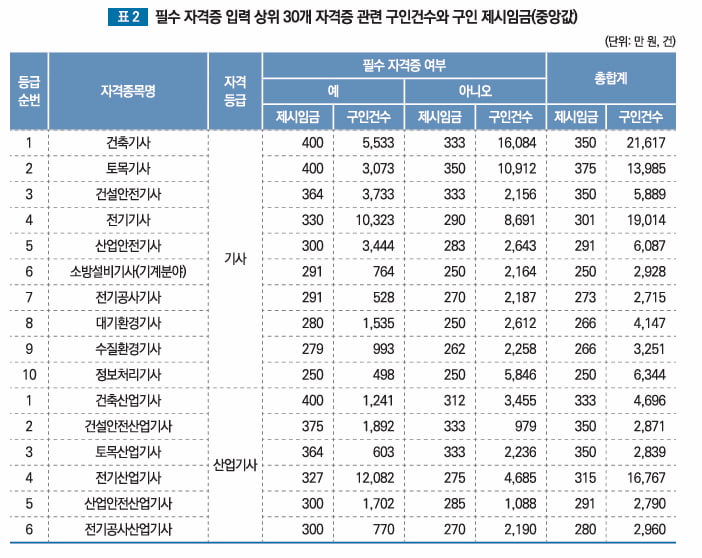 2일 한국고용정보원이 발간한 ‘기업은 어떤 국가기술자격증을 선호할까’ 보고서에 따르면,